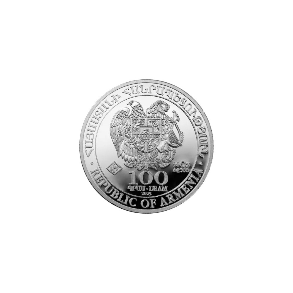 Rewers monety przedstawia ikoniczne lądowanie Arki Noego na górze Ararat, która znajduje się zaledwie kilka kilometrów od Armenii. Na pierwszym planie znajduje się latający gołąb z gałązką oliwną w dziobie, symbolizujący koniec potopu. Całą scenę otacza napis w języku angielskim i ormiańskim.