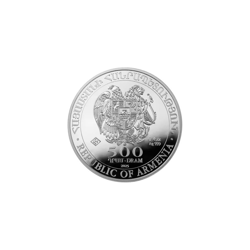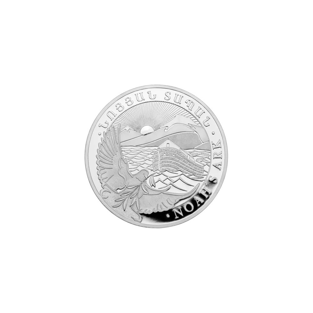 Rewers monety przedstawia kultowe lądowanie Arki Noego na górze Ararat, która znajduje się zaledwie kilka kilometrów od Armenii. Na pierwszym planie znajduje się latający gołąb z gałązką oliwną w dziobie, symbolizujący koniec potopu. Całą scenę otacza napis w języku angielskim i ormiańskim.