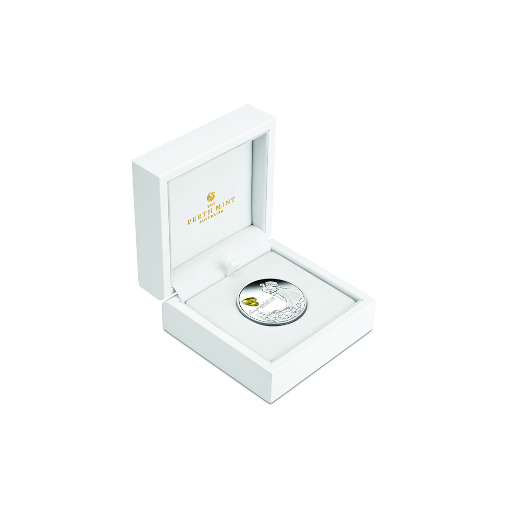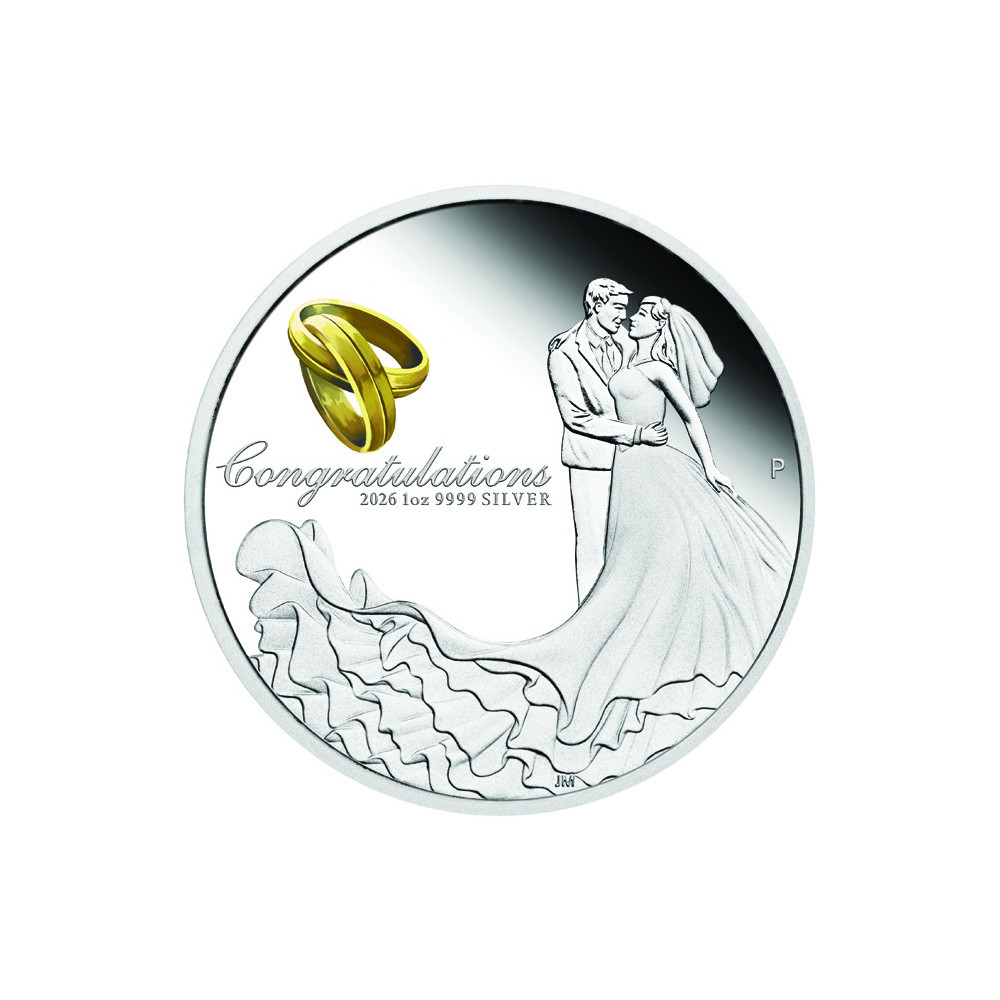 Ta piękna srebrna moneta to kolejny klejnot od "The Perth Mint Australia". Nowość na 2026 rok, nadaje się do składania życzeń idealnego małżeństwa.