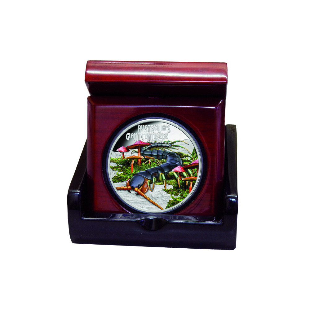 Moneta Deadly & Dangerous 2026 o nominale 1 dolara Giant Centipede to odważna, nowoczesna emisja z uderzającym kolorowym przedstawieniem jednego z najbardziej niepokojących stworzeń Australii. Wybita w próbie Proof z 99,99% czystego srebra, moneta łączy w sobie wysokiej jakości bicie z żywymi cyfrowymi kolorami, dzięki czemu jest wyjątkowym przedmiotem kolekcjonerskim.