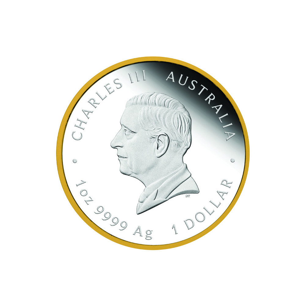 - Pozłacana moneta (łączny nakład 3 926 sztuk) ze stylizowanym pamiątkowym florenem z 1954 r. z lwem i kangurem, obydwoma zwierzętami, oraz obramowaniem pięknie podkreślonym 24-karatowym złotem.