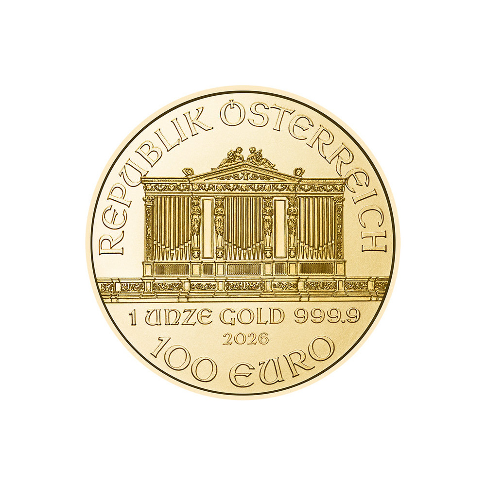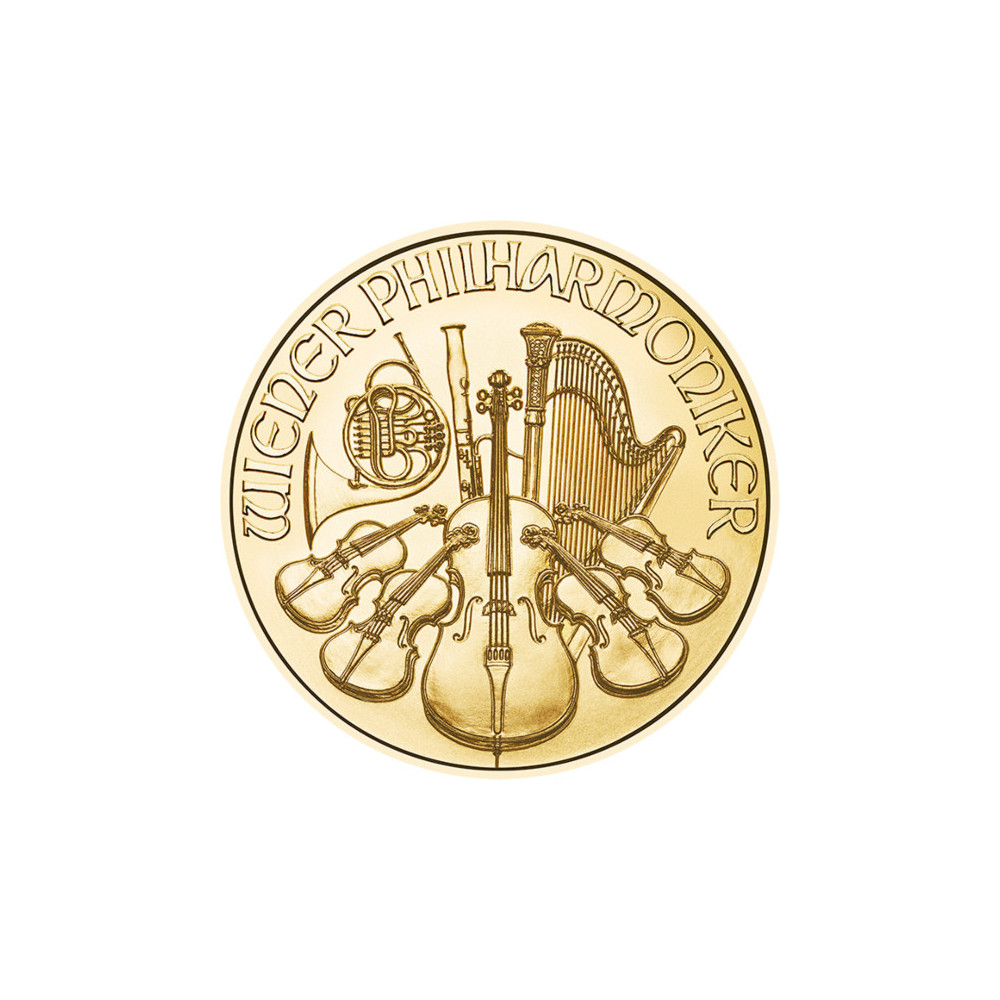 Filharmonicy Wiedeńscy zawdzięczają swoją nazwę słynnej austriackiej orkiestrze, która jest jedną z najlepszych na świecie. Awers złotej monety przedstawia wielkie organy wiedeńskiego Musikverein. Poniżej organów wytłoczono wagę 1 uncji, próbę 999,9, rok wybicia i nominał 100 euro. Powyżej widnieje napis "REPUPLIK ÖSTERREICH". Na rewersie przedstawiono niektóre instrumenty muzyczne orkiestry filharmonicznej, a na górnej krawędzi widnieje nazwa orkiestry i złota moneta "WIENER PHILHAMRONIKER". Podobnie jak powyższe złote monety, Wiedeńscy Filharmonicy są dostępne w rozmiarach 1/2 uncji, 1/4 uncji, 1/10 uncji i 1/25 uncji.